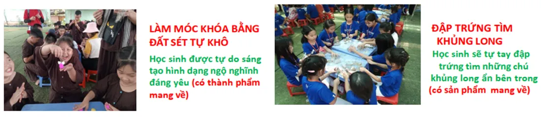 Học sinh được tự tay làm thủ công từ đất sét tự khô hay đập những quả trứng để tìm những chú khủng long bên trong.