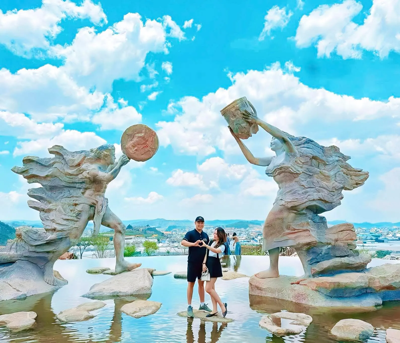 10h30: Đoàn đến tham quan, chụp hình tập thể tại Quảng Trường Lâm Viên: với 2 biểu tượng đậm nét Check-in là biểu tượng Hoa Dã Quỳ, Biểu tượng bông Atisô.