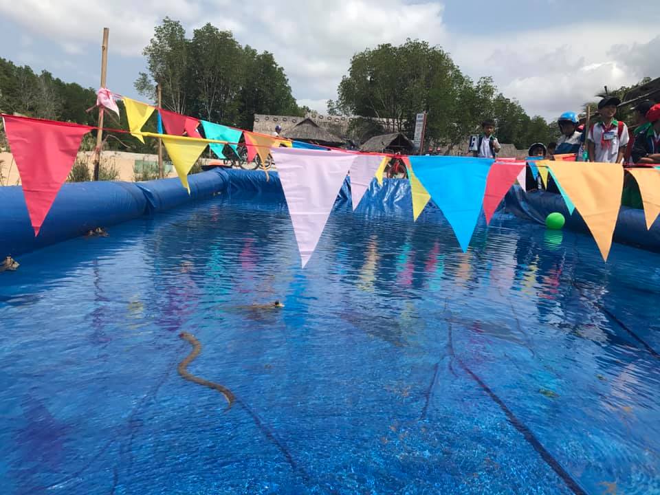 Con Đường Ác Mộng được ban tổ chức bố trí sẵn những con lương, cá thòi lòi, ếch,......