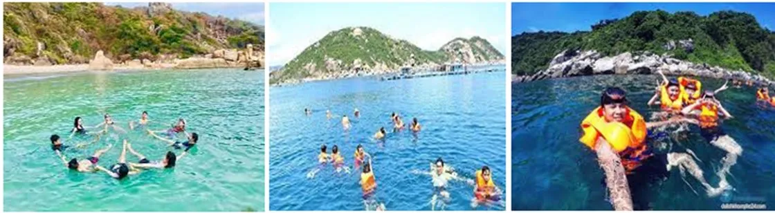 09h00: Đoàn đến với Bãi Nhà Cũ quý khách thỏa thích tắm biển và lặn Ngắm San hô “bằng măt kính: nhiều màu sắc.