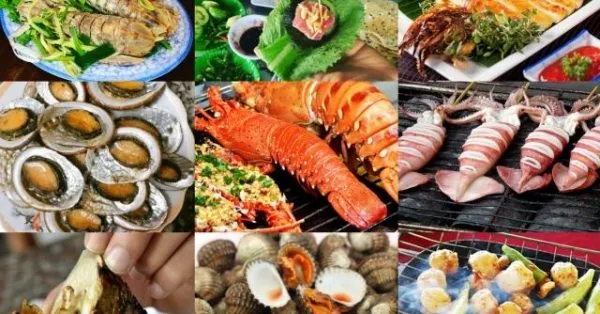 Tôm hùm, Mực hấp, Cá nướng, Ốc hấp các loại, Cá chiên bằm xoài, Lẩu cá biển Rau xào Cơm trắng+ tráng miệng .