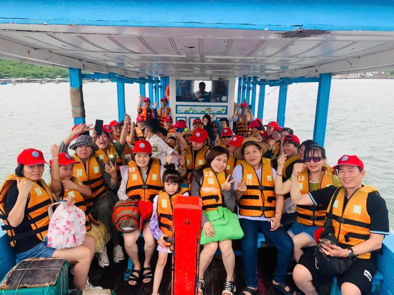 Quý lên di chuyển lên tàu du lịch, bắt đầu hành trình trải nghiệm tour tham quan vịnh Nha Trang.