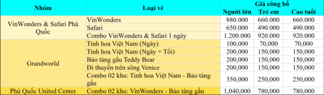 - Dịch vụ khác bao gồm trong tour: Vinpearl Phú Quốc, Cáp Treo Hòn Thơm