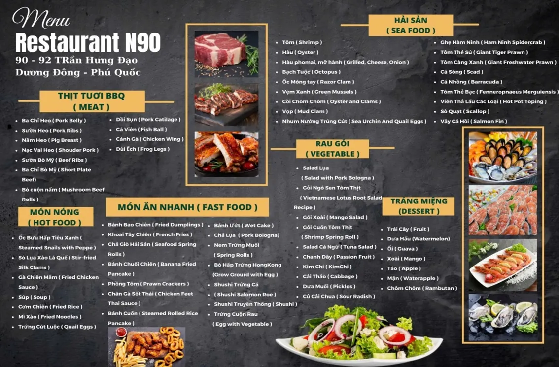 Thực đơn tham khảo: