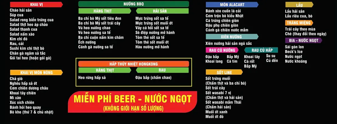 - 5 bữa ăn chính trong đó 1 bữa BBQ hải sản + 4 bữa set menu